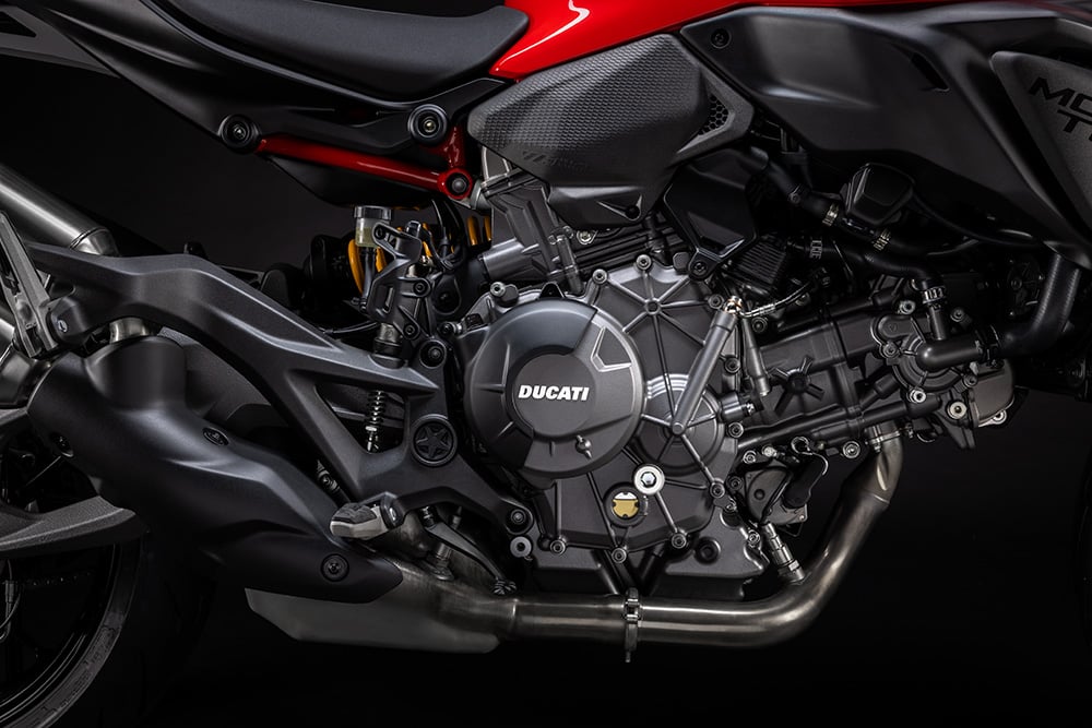 De Monster wordt aangedreven door een nieuw V-twin motorblok, dat 5,9 kg lichter is dan het vorige Testastretta Evoluzione blok. De motor levert 111 pk bij 9.000 tpm en is uitgerust met het IVT (Intake Variabele Timing) systeem. Dit systeem zorgt voor een goed bruikbaar koppel over een breed bereik: meer dan 80% van het maximumkoppel is beschikbaar tussen 4.000 en 10.000 tpm. Een belangrijk technisch punt is het lange onderhoudsinterval: de klepspeling hoeft slechts om de 45.000 km gecontroleerd te worden.