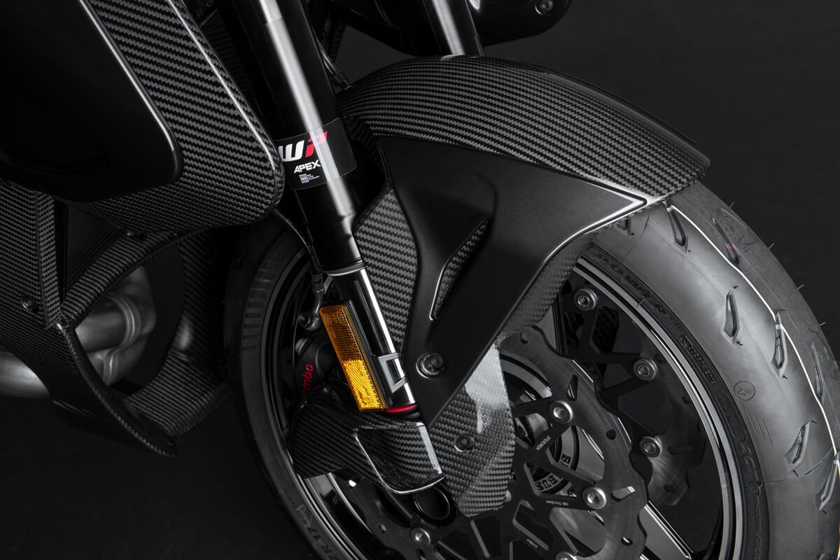 De motor is uitgerust met WP APEX Semi-Active Technology voor de vering, die elektronisch wordt aangepast aan de rijomstandigheden. De remmen komen van Brembo en bestaan uit een HYPURE Monoblock-systeem met 320 mm schijven vooraan en 240 mm achteraan. Vijf rijmodi passen gasrespons, tractiecontrole en vermogensafgifte aan de omstandigheden aan. Alle instellingen worden weergegeven op een volledig kleuren-TFT-scherm met BRABUS-interface.