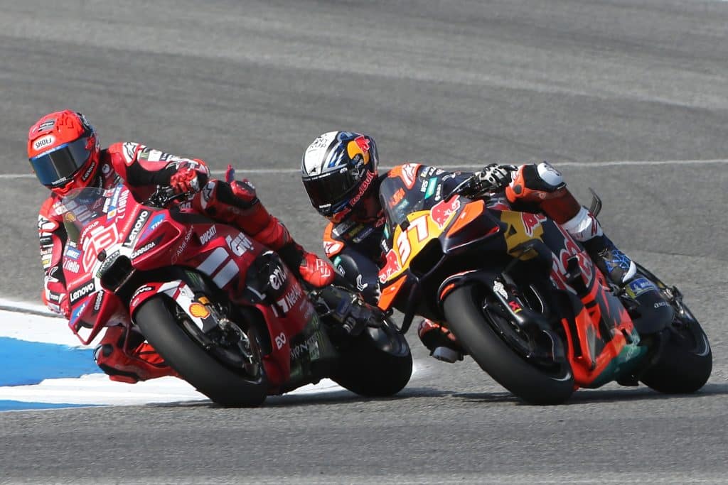 In een zinderende start van het MotoGP-seizoen 2026 zorgden Pedro Acosta van Red Bull KTM Factory Racing en Marc Marquez van het Ducati Lenovo Team voor een echte klassieker in Buriram. De twee namen het tegen elkaar op gedurende 13 explosieve ronden, met een climax die alle verwachtingen overtrof.