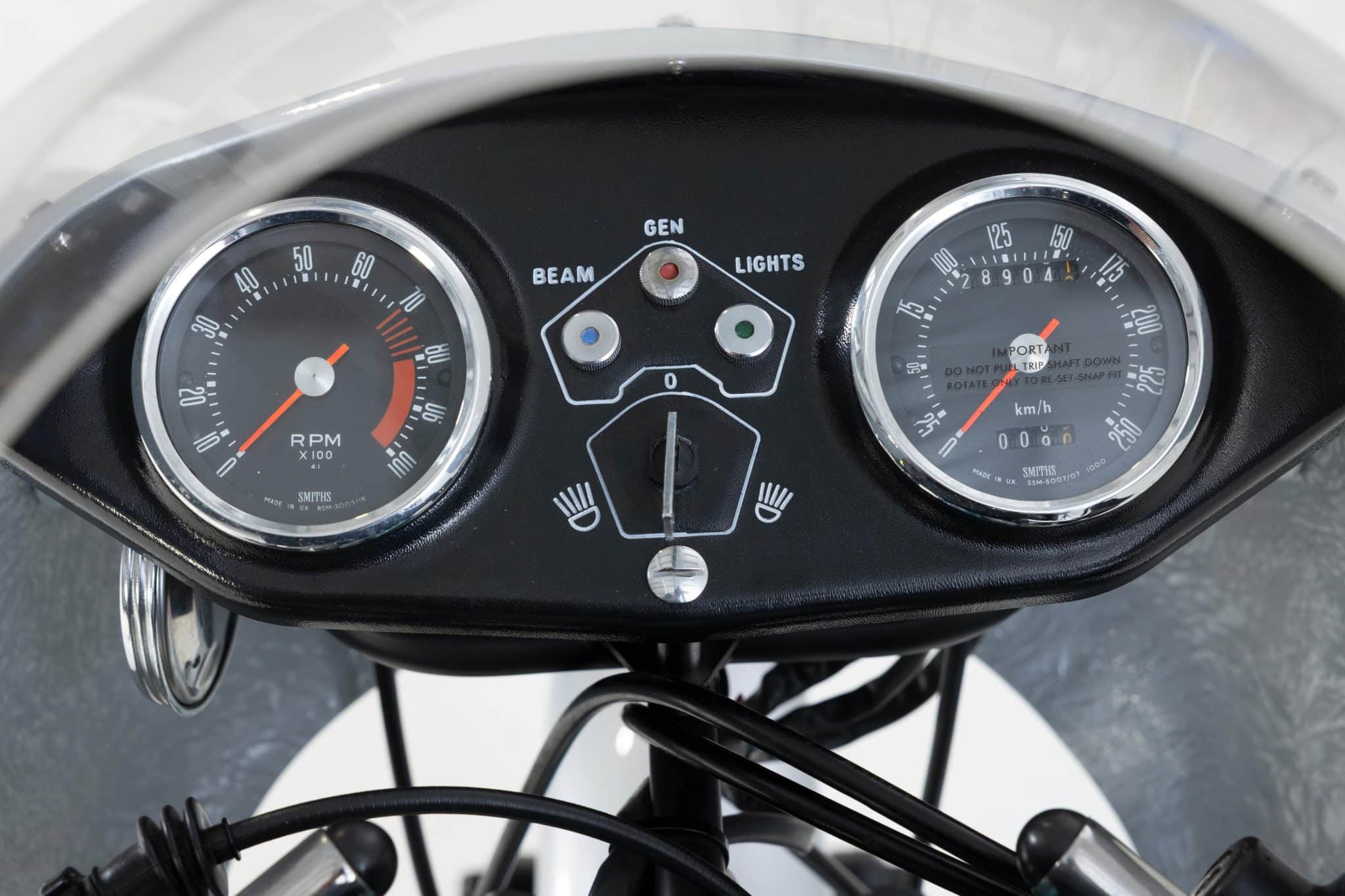 De 1974-versie heeft verbeteringen ten opzichte van het 1972-model, zoals een centrum-as voorvork en Brembo-voorremmen, wat de handling en remprestaties vergrootte. Het geveilde exemplaar had nog zijn originele Scarab-remmen, maar deze moesten wel gereviseerd worden.