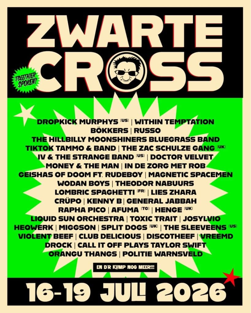 De Zwarte Cross benadrukt met deze aankondiging opnieuw de combinatie van motorcross, theater, stunts en muziek die het festival uniek maakt. Het evenement vindt plaats van donderdag 16 tot en met zondag 19 juli 2026 in Lichtenvoorde. De zaterdagtickets zijn uitverkocht; voor de overige dagen en de camping zijn nog kaarten beschikbaar.