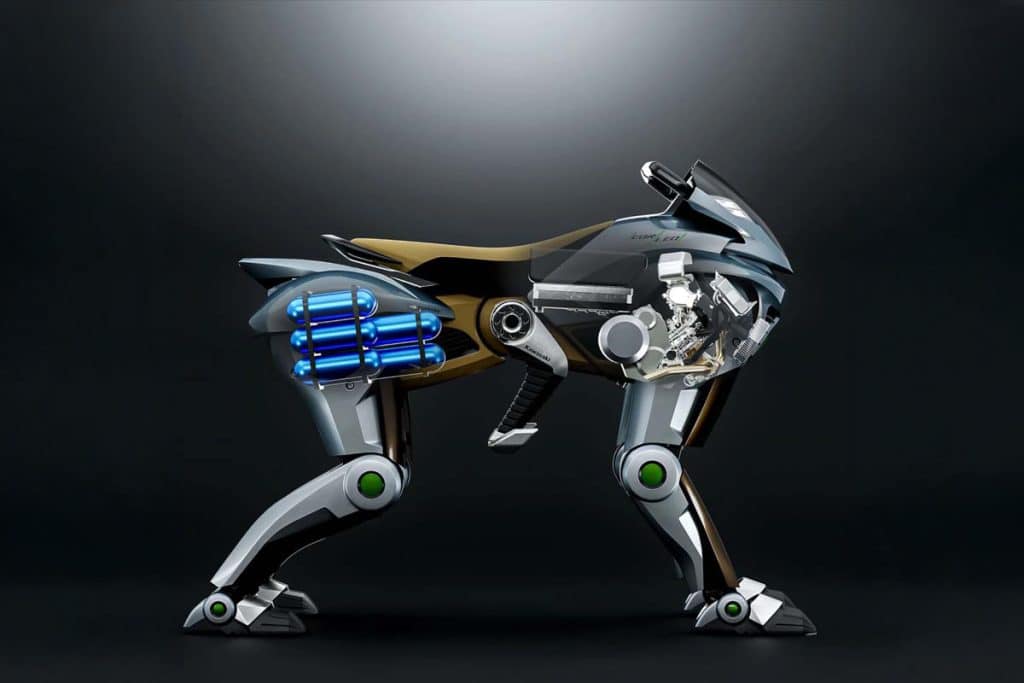De Corleo wordt aangedreven door een ingenieuze 150cc waterstofmotor die niet direct voor voortstuwing zorgt, maar fungeert als generator voor de elektromotoren in elk van de vier poten. Dit hybride systeem zorgt voor een emissievrije werking – enkel waterdamp komt uit de ‘uitlaat’. Een belangrijke vooruitgang ten opzichte van traditionele verbrandingsmotoren, zeker voor gebruik in natuurgebieden.