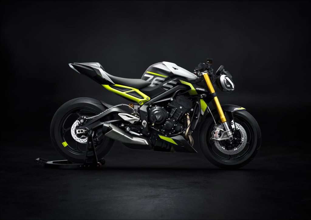 De Triumph Street Triple 765 de RX en de Moto2 Edition tillen prestaties en exclusiviteit naar een hoger niveau, met een volledig instelbare Öhlins NIX30-voorvork, clip-ons voor een sportieve zit en Brembo Stylema-remmen.