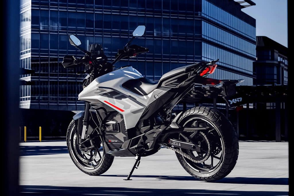 Met een 10,3 kWh-accu produceert de elektrische crossover 40,2 pk (30 kW) en 100 Nm aan koppel. Dat vertaalt zich in een acceleratie van 0 tot 60 km/u in slechts 2,7 seconden en een topsnelheid van 145 km/u. De combinatie van Bosch’ 10e-generatie Dual-Channel ABS, drievoudige tractiecontrole en Brembo-remmen zorgt voor maximale veiligheid en vertrouwen. De 41 mm upside-down voorvork en monoshock achter bieden met verstelbare demping en 200 mm bodemvrijheid een exact af te stemmen rijgevoel.