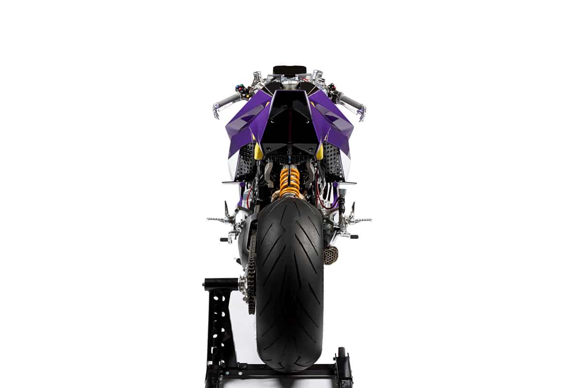 De agressieve, voorovergebogen houding is geen toeval. De achterkant komt omhoog, de neus duikt omlaag – een postuur dat lijkt alsof de Anima elk moment zijn prooi bespringt. De dicht bepantserde voorvorken en het lage silhouet maken het plaatje af. Dit is geen facelift; dit is een complete hercodering van de zwaartekracht zelf. Elke lijn jaagt energie door het design, alsof een animefiguur uit een dystopisch game-universum de weg op stormt.